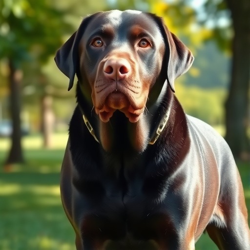 拉布拉多成年后通常有饱满的身体,结实的四肢和宽阔的胸部。其毛发浓密、光滑,颜色多样,包括金色、黑色和巧克力色。